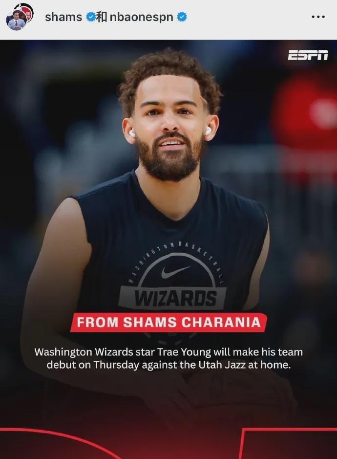 根据爆料王Shams报道,特雷杨将于本周五奇才主场对阵爵士比赛中迎来奇才生涯首秀。奇才主帅基夫确认了该消息,表示到时特雷杨预计会出战17-20分钟。